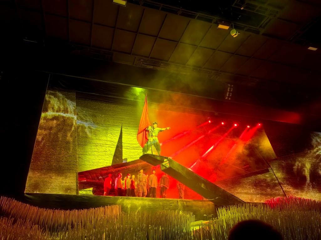 随后,同学们来到了延安红街,观看了沉浸式红色情景剧《再回延安》。“此后如竟没有炬火,我便是唯一的光!”通过一个普通士兵刘宝顺的视角,带领观众穿梭在革命年代的延安风雪中。这场剧利用最新科技特效手段,通过倒叙的方式及“一座记忆的博物馆”“一簇燎原的星火”“一条漫漫长征路”“一面不朽的旗帜”四个空间场景,让同学们亲身体验红军战士的艰辛历程。《再回延安》一场红色岁月的盛宴,磅礴而又感人至深。这是一次关于延安的再次回忆,一场让我们真实感受那段真实历史岁月的旅行。