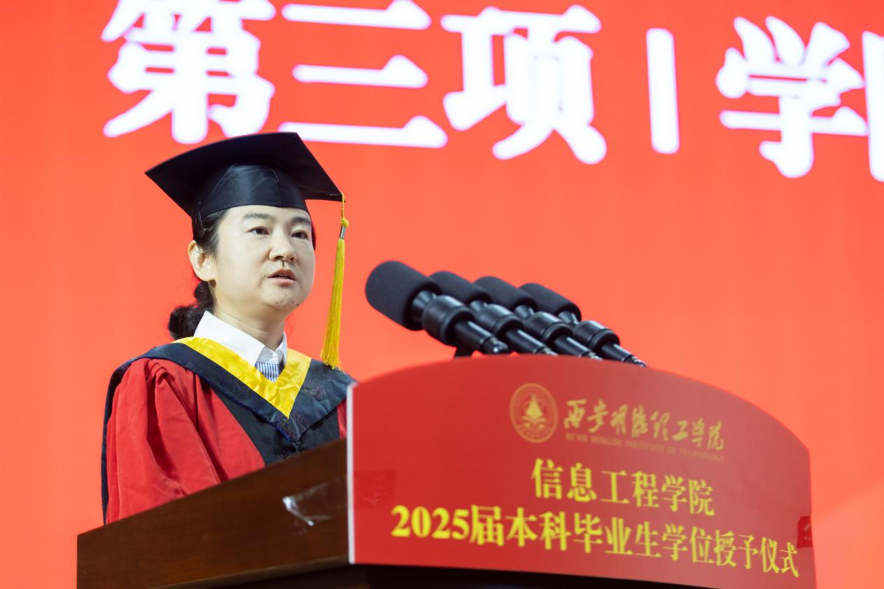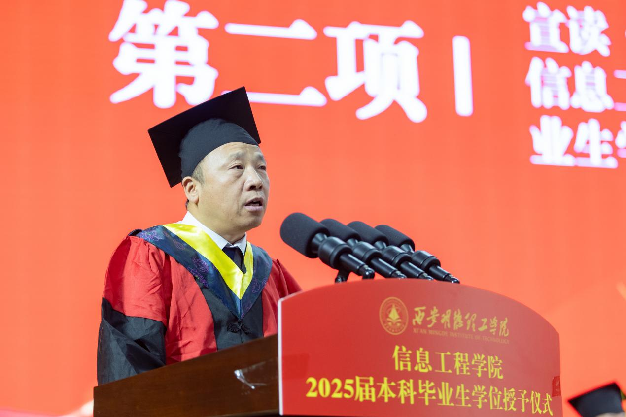 学院副院长范晖宣读《LETOU国际米兰官网关于信息工程学院2025届本科毕业生学士学位授予的决议》。