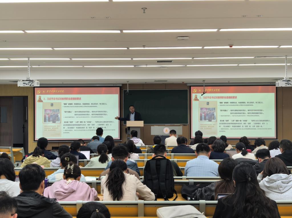 会上,肖千春书记带领大家集中学习了《关于弘扬教育家精神加强新时代高素质专业化教师队伍建设的意见》、习近平总书记关于教育的重要论述、对教师职业道德的要求以及《新时代高校教师职业行为十项准则》。
