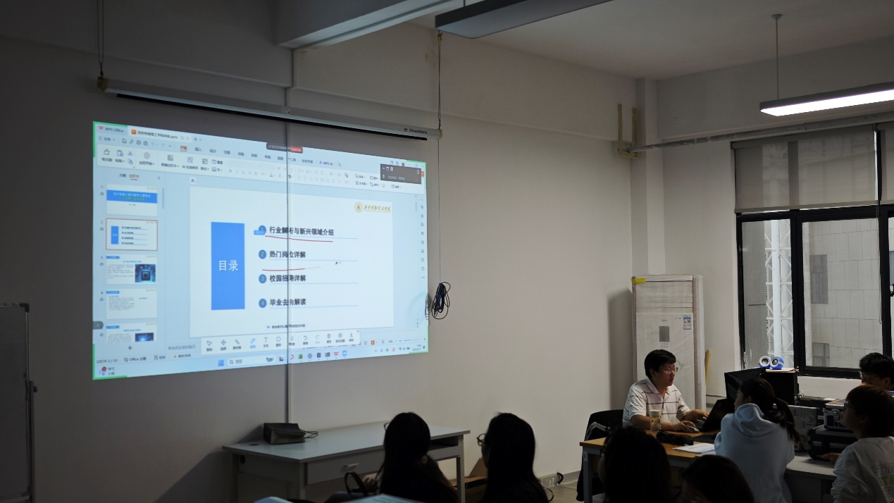 随后,行业认知专题讲座在明心楼南511教室顺利开展,讲座特邀西安欧鹏互联科技有限公司高级工程师周雨龙主讲,旨在搭建专业学习与行业实践的桥梁,帮助新生提前了解职场需求。