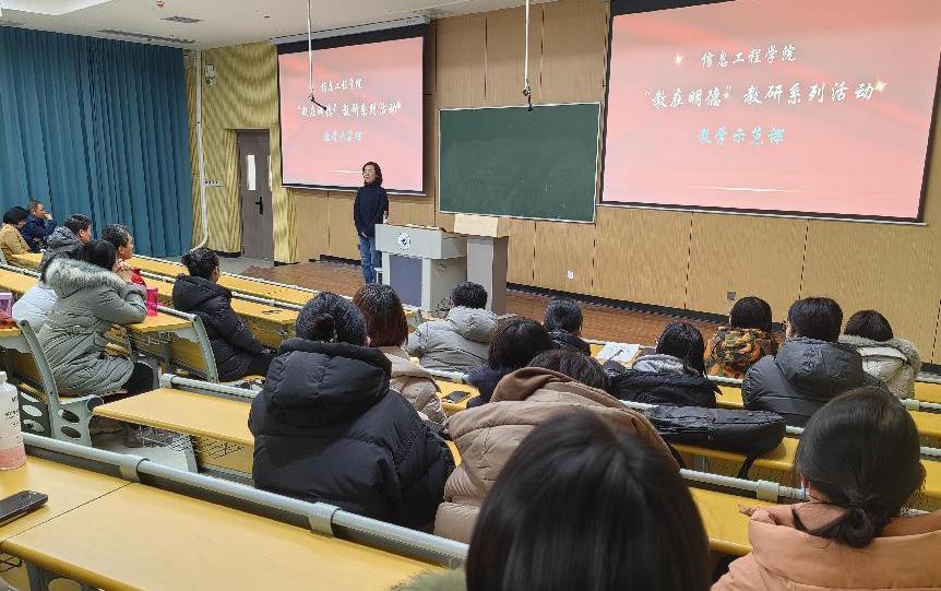 为进一步提高教师的教育教学水平,为教师成长与交流搭建平台,学习先进教学理念,创新教学方法和手段,使用数字化赋能课堂教学创新。2024年1月25日,信息工程学院在7#教学楼101教室举行“教研相依,共向未来”—“教在明德”教研系列活动之教学示范课。信息工程学院院长、副院长、专业负责人、课程负责人及全体教师参加了示范课,活动由范晖副院长主持。
