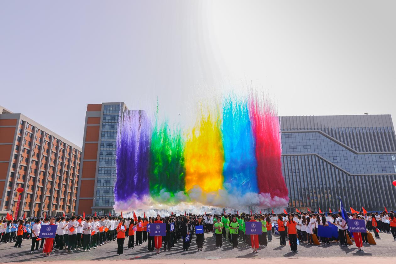 开幕式上,学院的方阵成为全场焦点,我院学子组成的数字红旗方阵格外引人注目。红旗作为革命精神的象征,代表着学院对红色文化的传承与发扬,二者结合,体现了学院将红色基因融入专业发展的决心与探索。