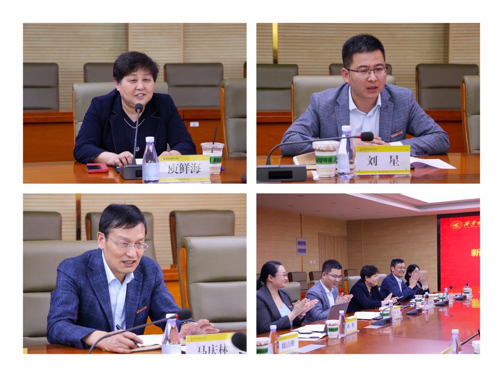 出席仪式的有副校长刘星、语言文化传播学院副院长刘勇、办公室主任于莉,新东方西安学校校长助理兼人力资源部高级总监陈楠、大学部西安中心校长李茂、大学部西安中心副校长金玲、课程服务部总监张辉、人力资源部招聘经理秦迪、人力资源部招聘组长刘振辉等。本次校企合作落地于语言文化传播学院。