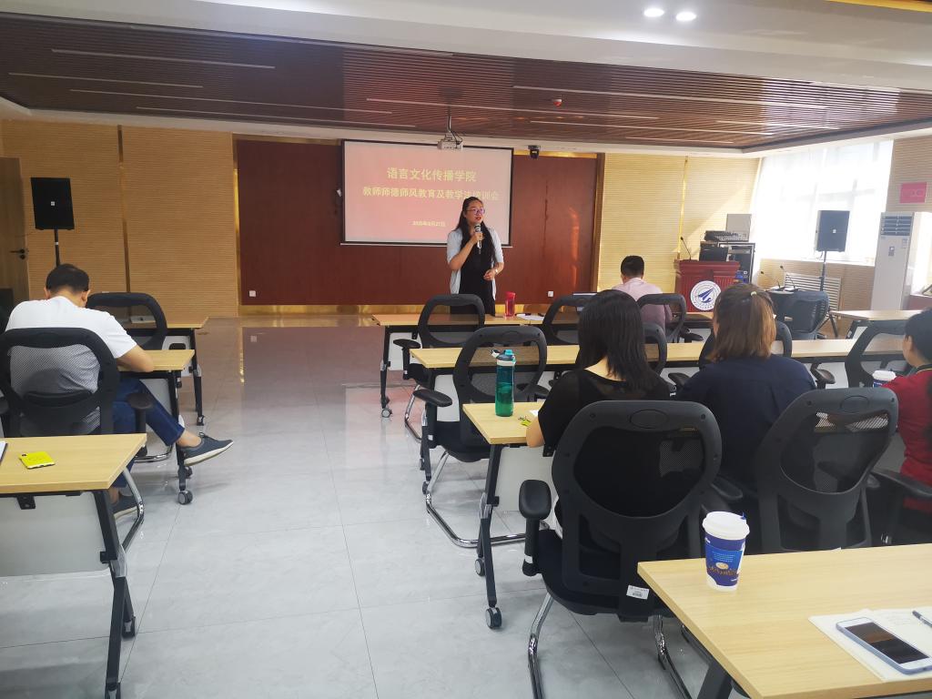 8月27日上午,语言文化传播学院在明志楼南311学术报告厅召开了教师师德师风教育暨及教学法培训学习会议。刘勇副院长主持。