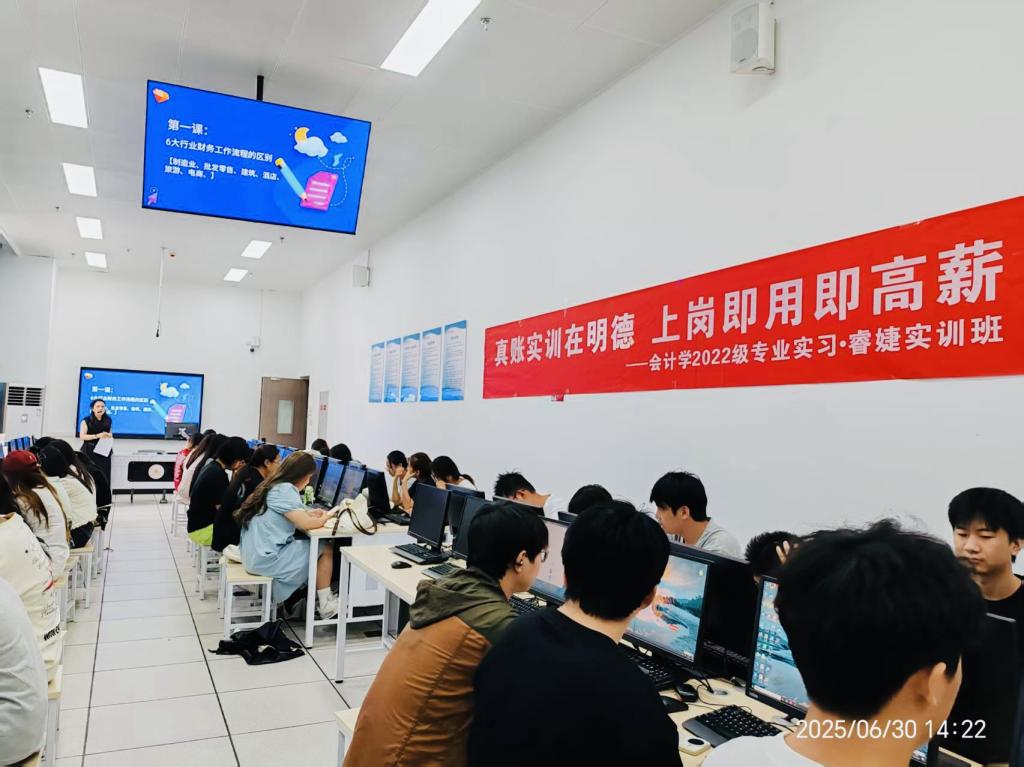 为提升会计学专业学生实践能力与就业竞争力,经济与管理学院会计学专业2022级睿婕实训班于6月30日正式启动,此次实训为期两周,以“真账实训在明德,上岗即用即高薪”为主题,通过系统教学与实战训练,助力学生实现从校园到职场的无缝衔接。
