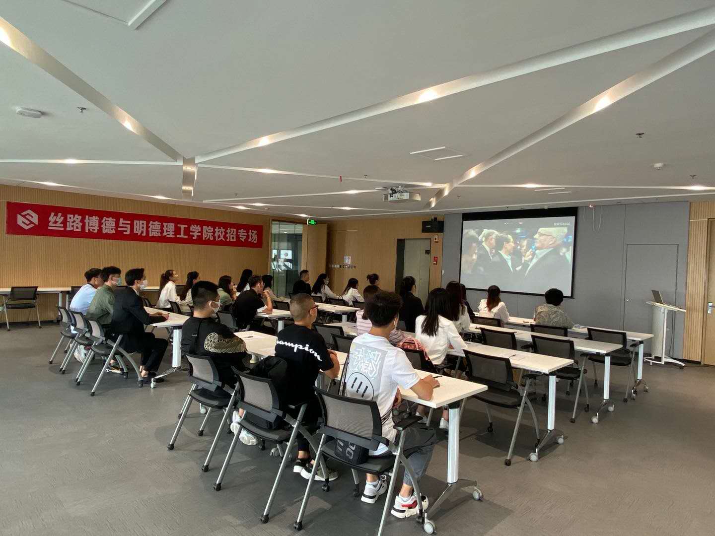 面试开始之前阿里巴巴丝路博德负责人、阿里巴巴丝路总部HR总监李格宁向同学们简要介绍了阿里文化、阿里发展历程、阿里国际事业部现状。参加面试的同学们填写了简历,并为接下来的面试精心准备。