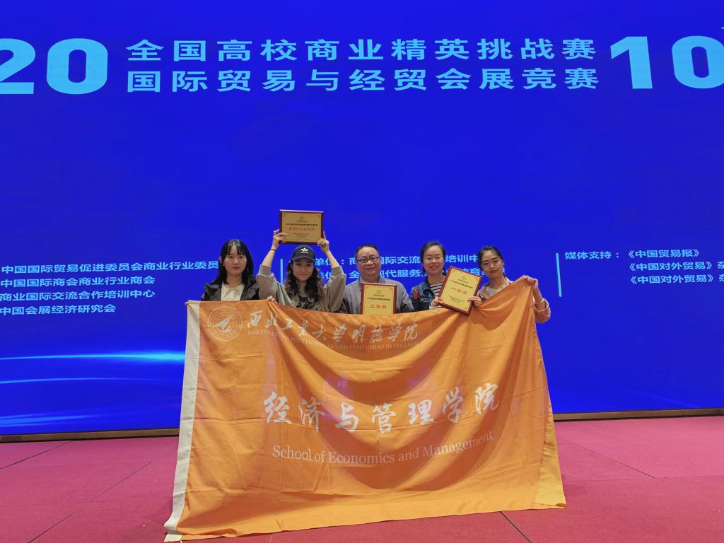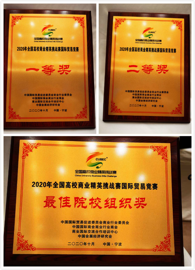 2020年10月19日,我院经济与管理学院国际经济与贸易专业选派的两只代表队在宁波参加2020年全国高校商业精英挑战赛国际贸易与经贸会展竞赛,并斩获佳绩。分获一等奖、二等奖和最佳院校组织奖。