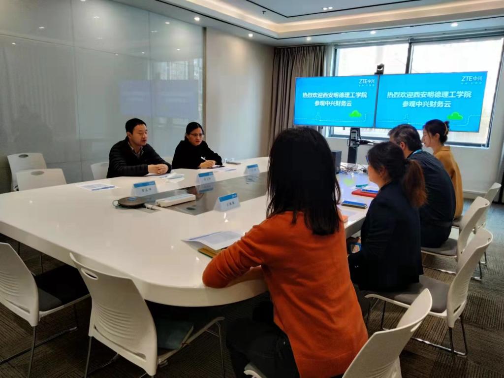 在中兴通讯财务云有关负责人陪同下,经济与管理学院老师们深入中兴财务云办公区域实地考察参观,切身感受中兴财务云的流程化、标准化、效率化、集约化等特点的共享运行方式。随后,双方开展座谈交流,交流伊始,中兴财务云