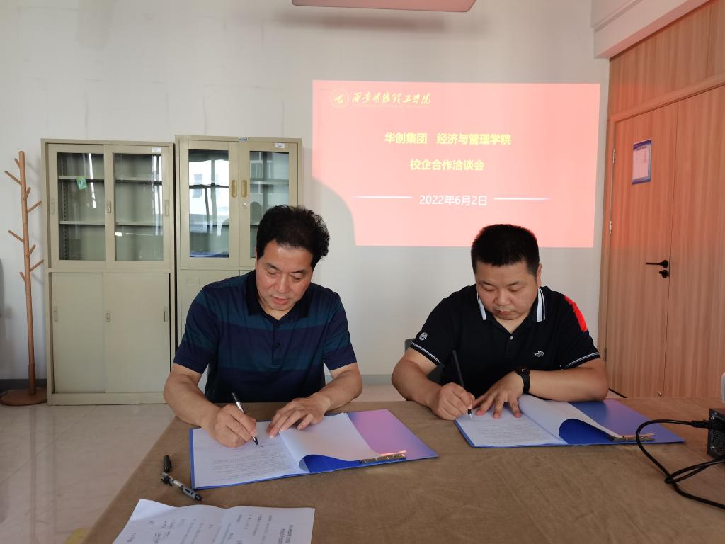 签约仪式上,郭鹏院长介绍了经济与管理学院历史沿革、办学理念、办学规模及校企合作的意义,并向陕西华创企业集团有限公司对我院教育事业发展的支持表示衷心感谢。他表示,双方要依托自身优势,积极搭建广阔平台,从教学、就业等多方面开展深层次合作,共同培养更多应用型人才,并结合企业需求,发挥学校优势资源,齐心协力共助校企合作深度融合。