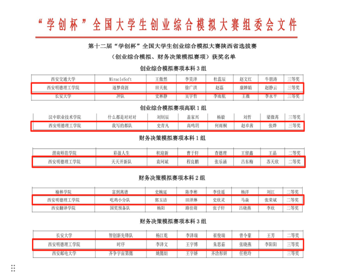 6月28日,由高等学校国家级实验教学示范中心联席会经济与管理学科组、中国陶行知研究会主办,陕西省中华职业教育社指导,西安建筑科技大学管理学院承办,杭州贝腾科技有限公司提供技术支持的第十二届“学创杯”全国大学生创业综合模拟大赛陕西省选拔赛(创业综合模拟、财务决策模拟赛项)圆满落幕。来自全省43所高校的228支队伍,共计800余名师生参与了本次赛事。历经四小时紧张激烈的模拟运营对抗,LETOU国际米兰官网5支参赛队伍荣获二等奖2项、三等奖3项的好成绩。