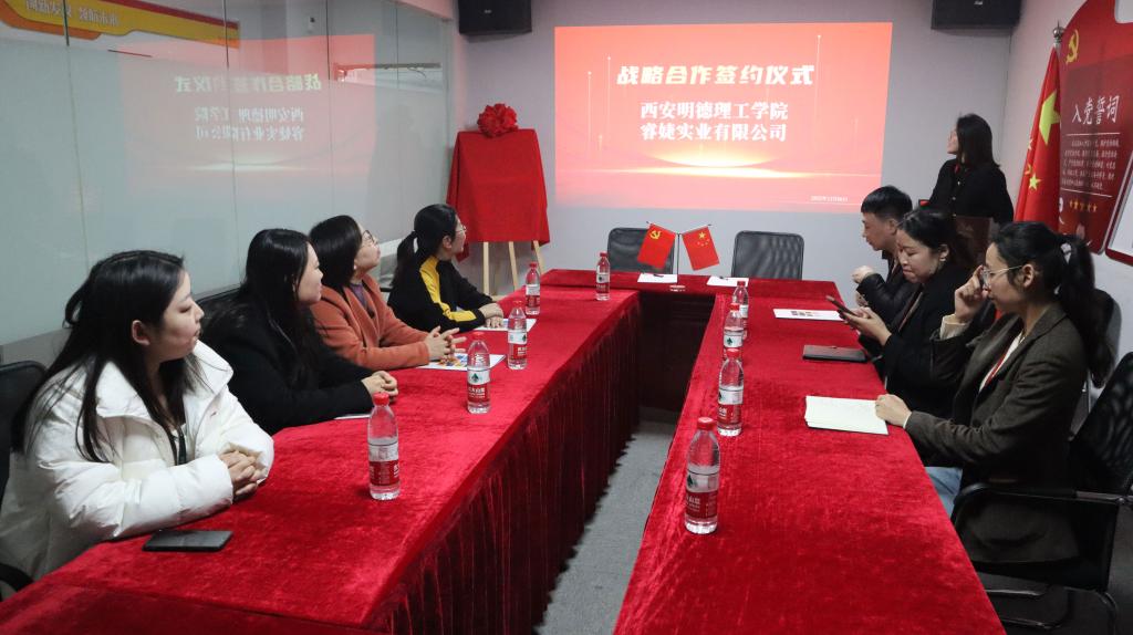 在热烈、融洽的气氛中,睿婕实业有限公司和经济与管理学院签署了校企合作协议并举行了揭牌仪式。