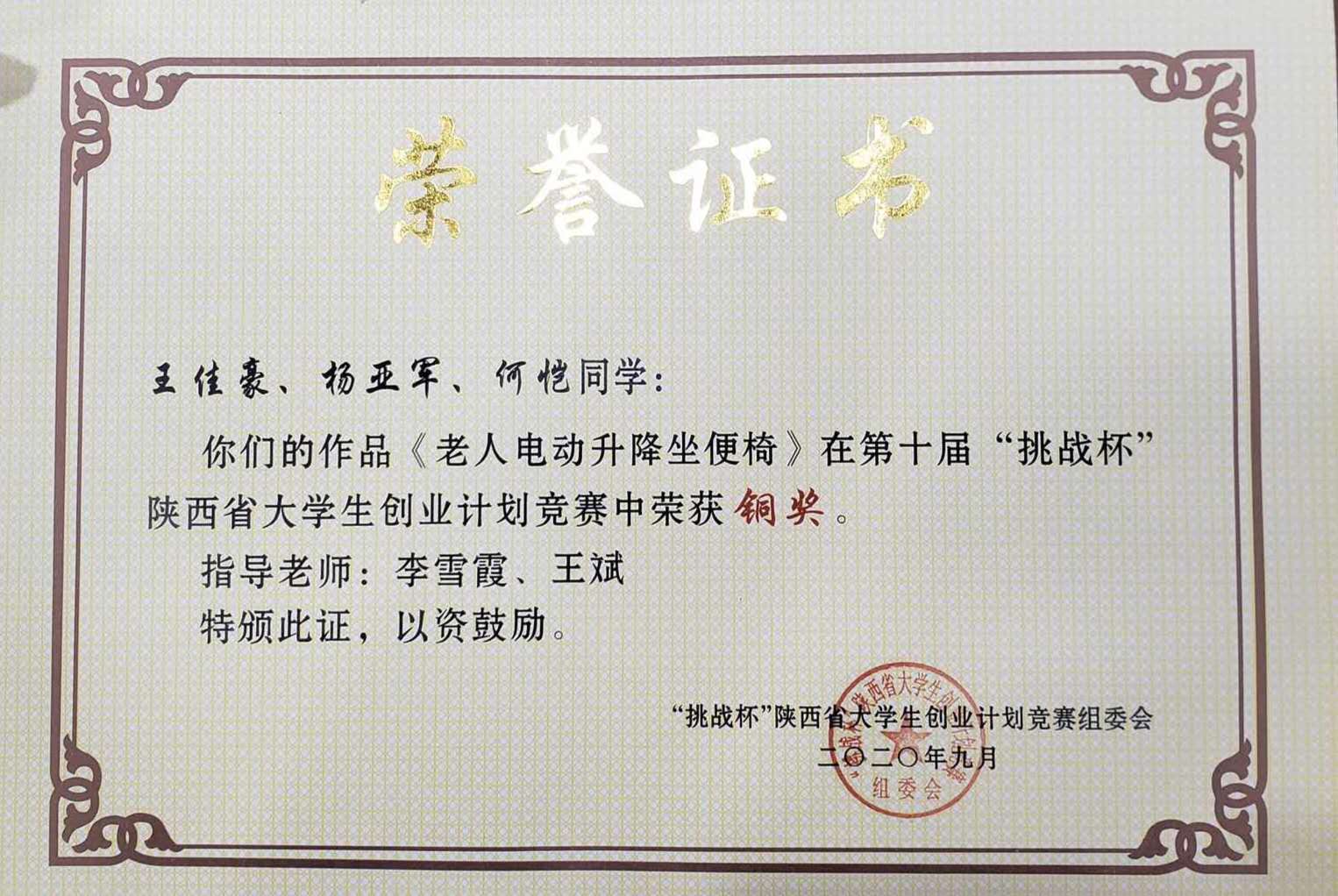 自本届大赛启动以来,在学院党委的正确领导下,我院认真筹备、组织协调,最终由李雪霞、王斌等老师指导的作品《老人电动升降坐便器》,获得本届大赛的铜奖。