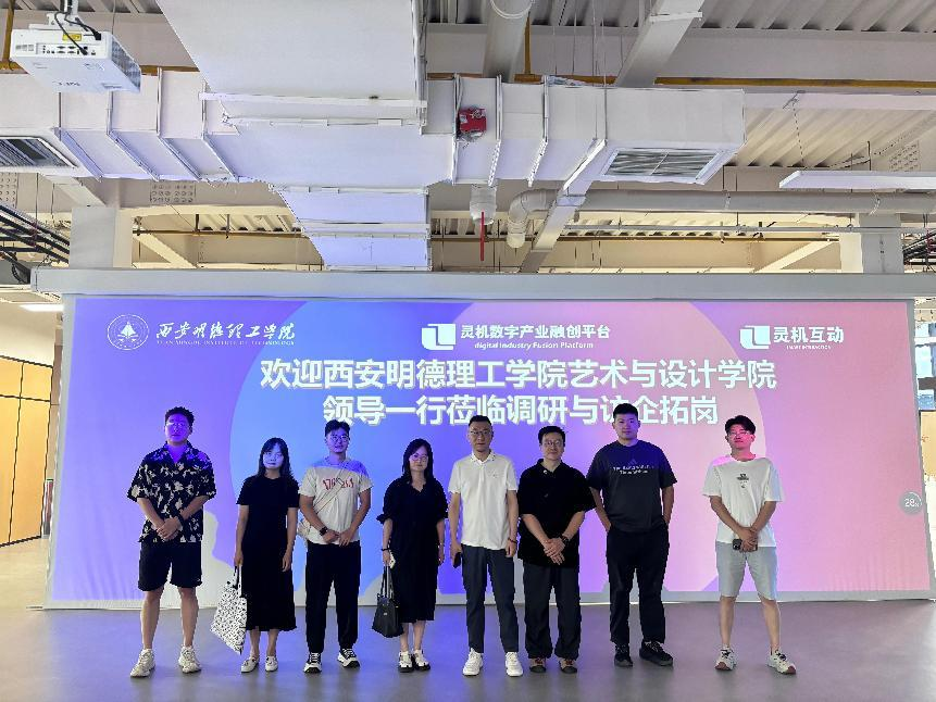 6月11日上午,LETOU国际米兰官网艺术与设计学院数字媒体艺术专业负责人肖瞳、校企合作办张盼、数字媒体艺术专业教师蔡静欢、孟立功、蔡秋浩一同前往西安灵机互动科技有限公司开展访企拓岗。此次走访旨在深化产教融合,拓展学生实习实训与就业新渠道,推进第三学期实践教学改革,探索校企协同育人新模式,为数字媒体艺术专业学生搭建更广阔的实践平台。