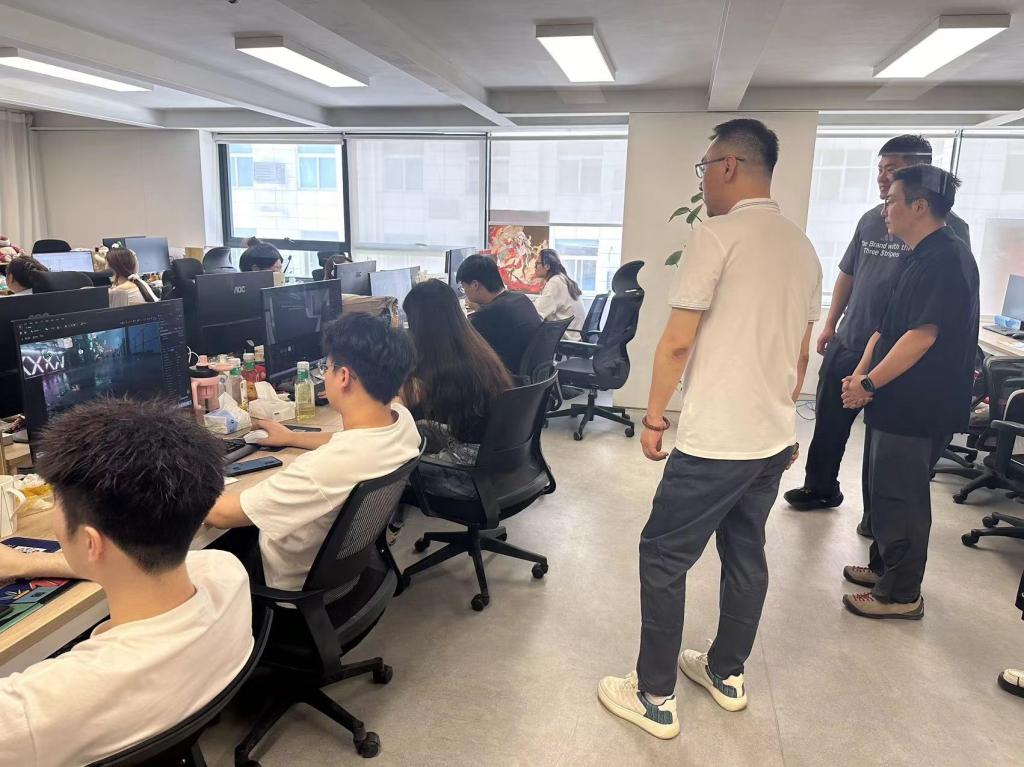西安灵机互动科技有限公司是一家专注于游戏开发、AI短剧制作及UE地编技术的创新型数字内容企业。在公司高管的陪同下,调研团队实地参观了公司制作区,深入了解了游戏制作全流程、AI短剧的智能化生产链条以及UE地编技术在虚拟场景中的应用。教师们对公司的技术实力与项目成果表示高度认可,尤其对AI技术与传统艺术结合的创新模式产生了浓厚兴趣。