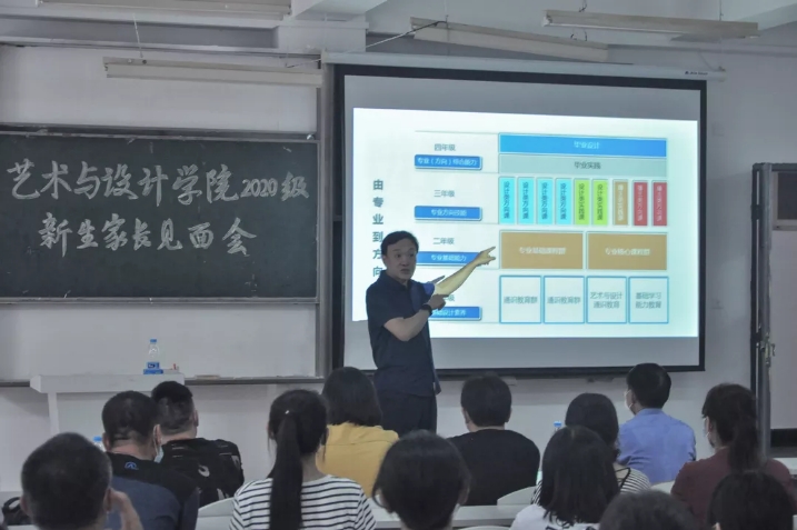 为了让新生家长全面了解二级学院学科专业建设、教育教学质量、人才培养体系和育人成效,艺术与设计学院于9月12日下午在培德楼112教室召开2020级新生家长见面会。二级学院领导、各专业负责人、2020级新生家长及学生参加了会议,本次见面会由艺术与设计学院执行院长苟秉宸教授主持。