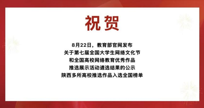 本届大赛以“争做校园好网民,汇聚网络正能量,挺膺担当建新功”为主题,面向高等院校全日制在校学生群体,共征集微视频、微电影、动漫、摄影、网文、公益广告、音频、校园歌曲、其他类网络创新作品9类作品。根据工作安排,经作品征集、资格审核、专家遴选(初选、复选、终选)、作品政审等程序,遴选出最终入围作品。第七届全国大学生网络文化节入选作品包含微电影作品110个,其中陕西入选作品13个。