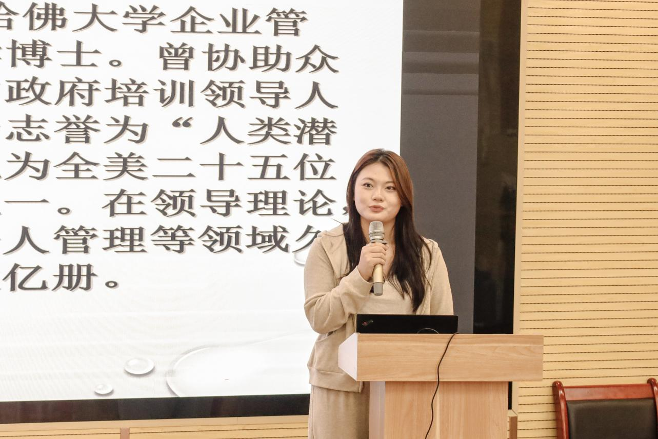 其次,艺术与设计学院团委副书记梁雨蒙为大家分享了她对阅读的独到见解与深刻分析。她深情地说道:“阅读,是一场心灵的奇妙旅程。每一本书籍都如同一扇神奇的窗户,轻轻推开,便能引领我们穿越时空的界限,踏入那些或许终其一生都无法亲身踏足的世界。在这些由文字构建的天地里,我们得以体验百味人生,感受未曾谋面的喜怒哀乐,让心灵在共鸣中成长,视野在跨越中拓宽。”希望各位同学能够以此次读书分享会作为开始,在今后的学习生活中积主动阅读,用自己的行动带动其他同学一起参与到阅读中来,阅读不仅是在体验他人的人生,也是一次对自己的洗礼。最后,呼吁大家一起阅读起来,一起爱读书,读好书。