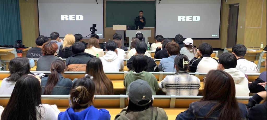 在分享过程中,王斌先生结合自身丰富的行业经验和深厚的专业知识,以RED摄影机为例,结合实际案例介绍了摄影机的分辨率、卓越画质以及在行业中摄影机如何为电影制作人提供清晰度画质和良好细节表现力,为学生们深入浅出地讲解了电影摄影的核心技术与最新发展趋势。
