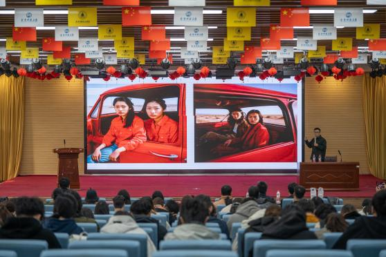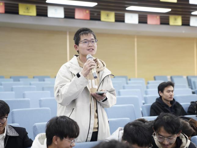 讲座中设置有学生问答环节。学生们纷纷就AI在艺术创作中的应用、AI摄影的生命力、AI的具体算法和边界值等问题向海杰老师提问。海杰老师耐心细致地一一解答,不仅解答了学生们的疑惑,还激发了他们对AI视觉艺术的浓厚兴趣和深入思考。