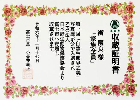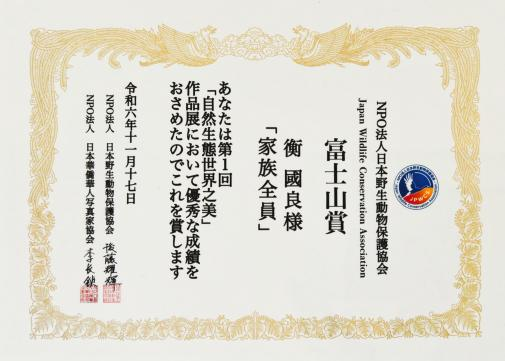 2024年11月17日,在日本静冈县富士市举行的首届自然生态之美写真摄影展上,艺术与设计学院数字媒体艺术专业衡国良教授作品《瞧这一家子》获得“富士山”奖,同时作品被日本富士市收藏。