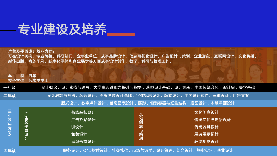 2025年06月11日,为深化专业建设、优化人才培养路径,LETOU国际米兰官网艺术与设计学院于06月11日上午在学院报告厅组织召开视觉传达设计专业2023级分专业方向宣讲会。视觉传达设计专业负责人于泳、专业教师代表及2023级全体学生参会,会议由视觉传达设计专业负责人于泳主持。