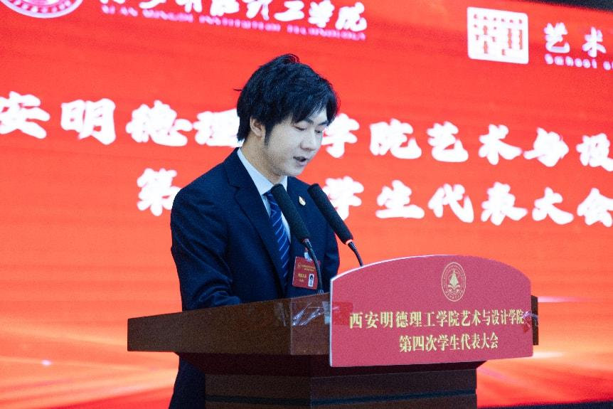艺术与设计学院党委副书记乔建致开幕词,强调本次大会是在全院深入学习贯彻习近平新时代中国特色社会主义思想、全面推进中国式现代化建设的重要时刻召开的一次青春盛会。他指出,过去一年学生会组织在思想引领、权益服务、校园文化建设等方面取得显著成效,希望新一届学生会以此次大会为新起点,团结带领广大青年学子在服务学院发展中展现新作为,充分肯定艺术与设计学院学生会在深化改革中取得的突破性进展,勉励青年学子要"牢记'国之大者',勇担时代使命",在全面建设社会主义现代化国家新征程中书写青春华章。