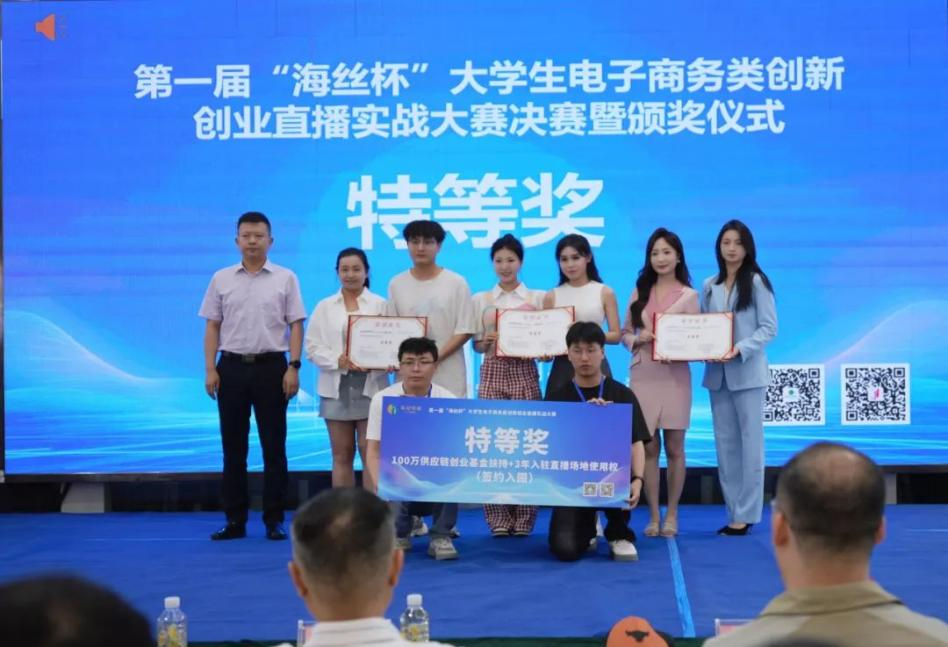 由创新创业学院组织、艺术与设计学院播音与主持艺术专业指导的两支团队在首届"海丝杯"大学生电子商务类创新创业直播实战大赛决赛中展现卓越实力,一举斩获2项特等奖及最佳创意奖,并获总额200万元的供应链创业基金扶持,成为赛事最大赢家。