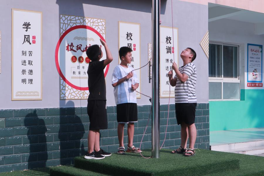 八月的乡村校园,一场“文明礼仪”主题升旗仪式,成为实践团深耕乡村教育的生动注脚。当地学生首次独立完成升旗,整齐步伐、默契配合,化作“责任”与“文明”的沉浸式课堂;实践队学生代表登台,以青春视角拆解“礼”的维度,古训与现代文明规范结合,让礼仪准则可知可感;仪式中,展示了绘画书法成果,20余幅作品见证实践成效。从国旗飘扬的肃穆,到笔墨挥洒的灵动,文明礼仪培育融入实践全环节,让文明种子在童心沃土悄然扎根。