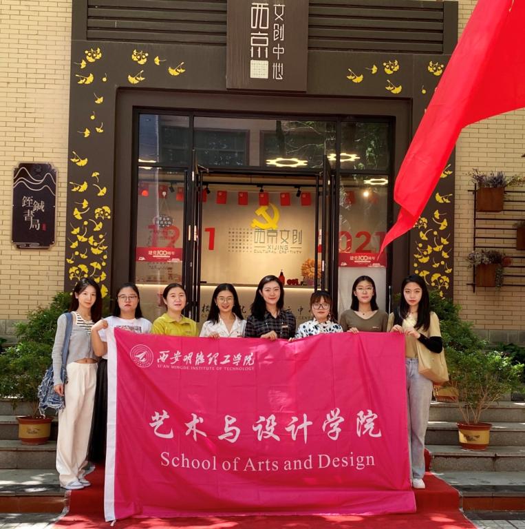 此行的亮点是位于西京学院餐饮中心北侧的西京文创中心,它是设计与艺术学院的实践基地,文创中心的装修与陈设让大家眼前一亮。中心杨老师热情地向大家介绍了文创中心所陈列的各种文创作品——体现校园文化的陶瓷茶杯、充满设计感的灯具摆件、极具西京设计特色的丝巾配饰与办公文具等。通过展品及杨老师的介绍,老师们不仅体验了西京校园文化,同时也得到了将学院科系特色与学生文化生活相结合的灵感。