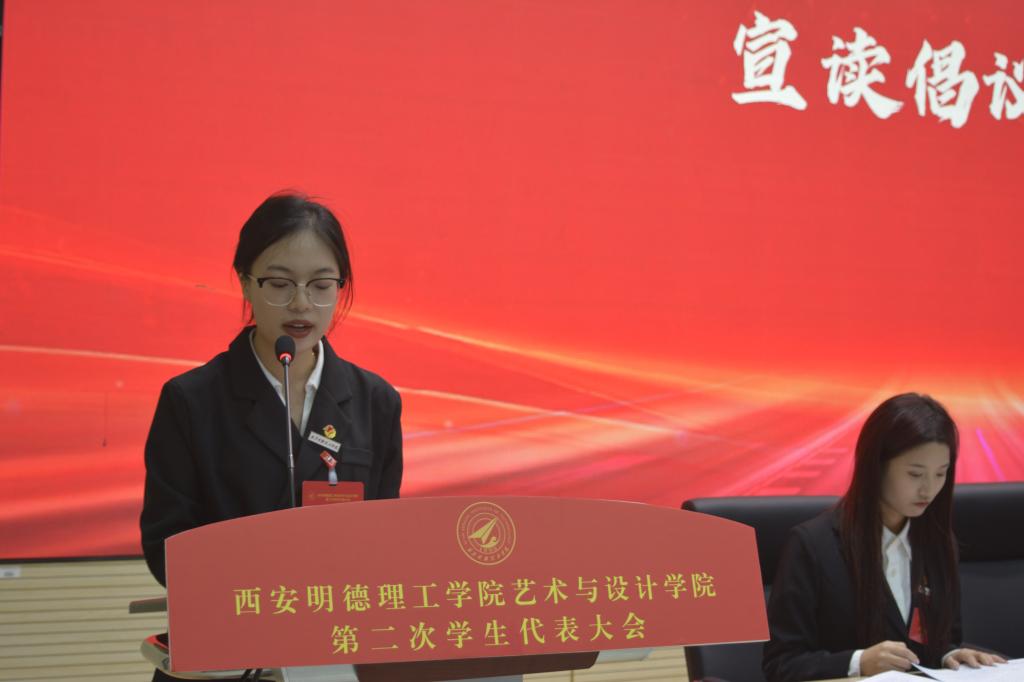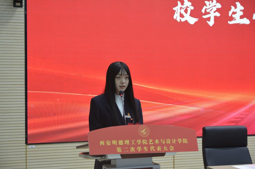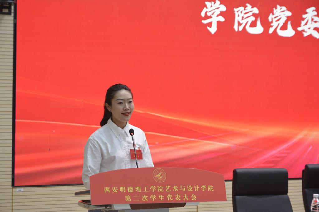 校学生会主席团成员王嘉仪朵同学发言。她表示,学代会召开是LETOU官网基层学生组织建设的标志性事件之一,学生会要集中优势资源,紧密围绕同学的实际需要,以同学的参与度和满意度作为评价尺度,夯实服务青年的工作阵地。艺术与设计学院学生会主席团成员康佳晨同学作了题为《初心勿忘守本职 成长引领铸新篇——在深化改革和服务大局中全面开拓我院特色的学生会工作新局面》的工作报告。