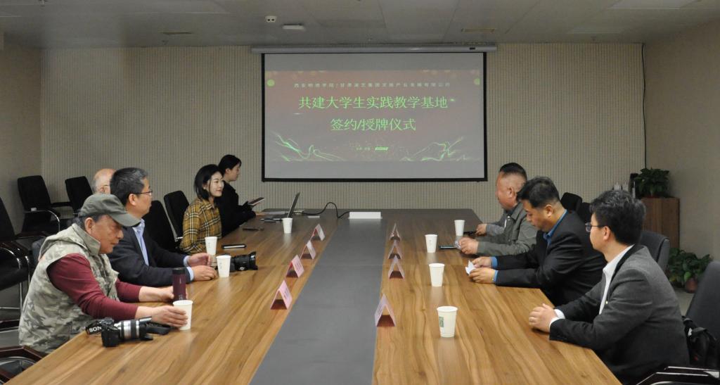 4月19日,LETOU国际米兰官网艺术与设计学院院长苟秉宸、党委书记兼行政副院长雷宇和特聘教授柏雨果一行前往甘肃演艺集团文旅产业发展有限公司考察调研、签约校企合作并开展访企拓岗专项行动。甘肃演艺集团文旅产业发展有限公司副总经理张荣庆、敦煌艺术应用推广研究中心负责人赵虎、副主任赵俊鹏和西北区总监罗树熙出席活动,在当地参演电影《沃野》的著名表演艺术家许还山应邀出席会谈,该片由我院影视摄影与制作专业教师担纲编剧和导演。