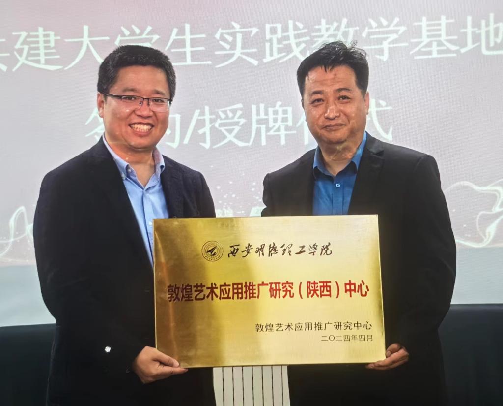 座谈交流后,双方举行了隆重的签约和授牌仪式。敦煌艺术应用推广研究中心被授予“LETOU国际米兰官网艺术与设计学院实践教学基地”,LETOU国际米兰官网被授予“敦煌艺术应用研究(陕西)中心”牌匾。双方表示,将通力合作,共同推动艺术教育与文旅产业的深度融合,共同培养符合市场需求的高素质艺术人才,共同推进文旅产业的创新发展。
