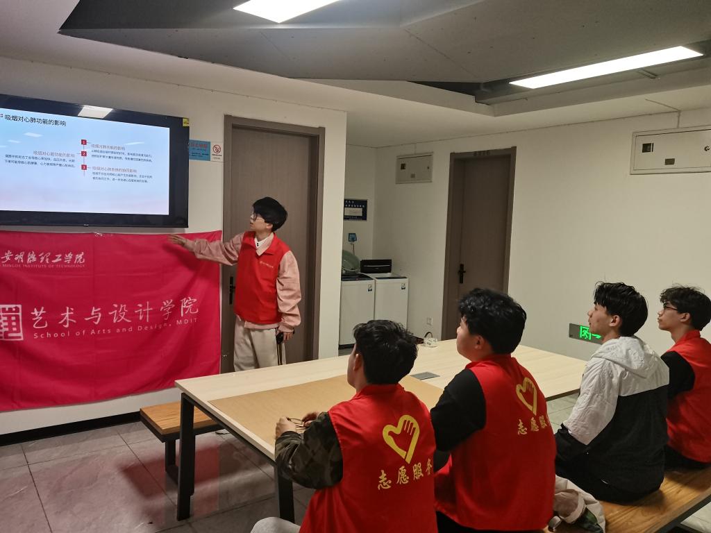 为促进全体师生对禁烟常识及对吸烟危害的深刻认识,呼吁大家自觉抵制烟草,养成健康的生活习惯,维护无烟校园。4月26日晚在艺术与设计学院团委组织在莲湖校区嘉德公寓公共区开展“一站式学生社区 我为同学做实事”禁烟宣讲和禁烟作品评选活动。学院志愿服务分队负责人刘鉴霆、权益服务部成员、学院学生会主席及功能性团支部代表王智锐,公寓楼长、层长、舍长及学生代表参加此次活动。