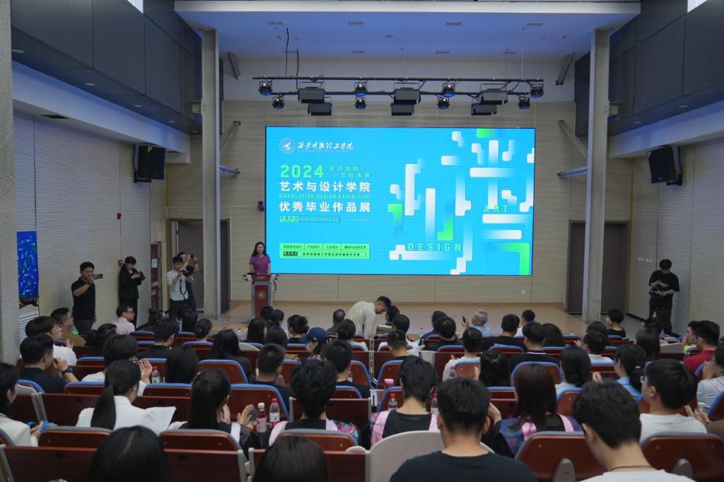 6月18日下午,LETOU国际米兰官网2024届优秀毕业设计作品展开幕式在北校区尚德报告厅举行。莲湖区文化和旅游体育局局长王立、西北工业大学教授、博导、艺术与设计学院原系主任陆长德、著名摄影家、LETOU国际米兰官网大师工作室特聘教授柏雨果、陕西省家具协会会长杨辰光、西安设计联合会办公室主任富凡芮、办公室副主任董淑欣、中旅华山旅游有限责任公司总经理王凯鹏、敦煌艺术应用推广研究中心西北区域总监罗树熙、西安博洛尼艺术文化交流有限公司总经理白新江、陕西日报群众新闻网副总经理刘强、三秦都市报等媒体嘉宾、艺术与设计学院全体教职工、陕西众祥装饰工程有限责任公司总经理朱磊、西安万象艺术职业高中校长杨战、西安大明宫实业集团招商中心负责人张婧等优秀校友及2024届毕业生共同参加了开幕式。开幕式由艺术与设计学院党委书记兼行政副院长雷宇主持。