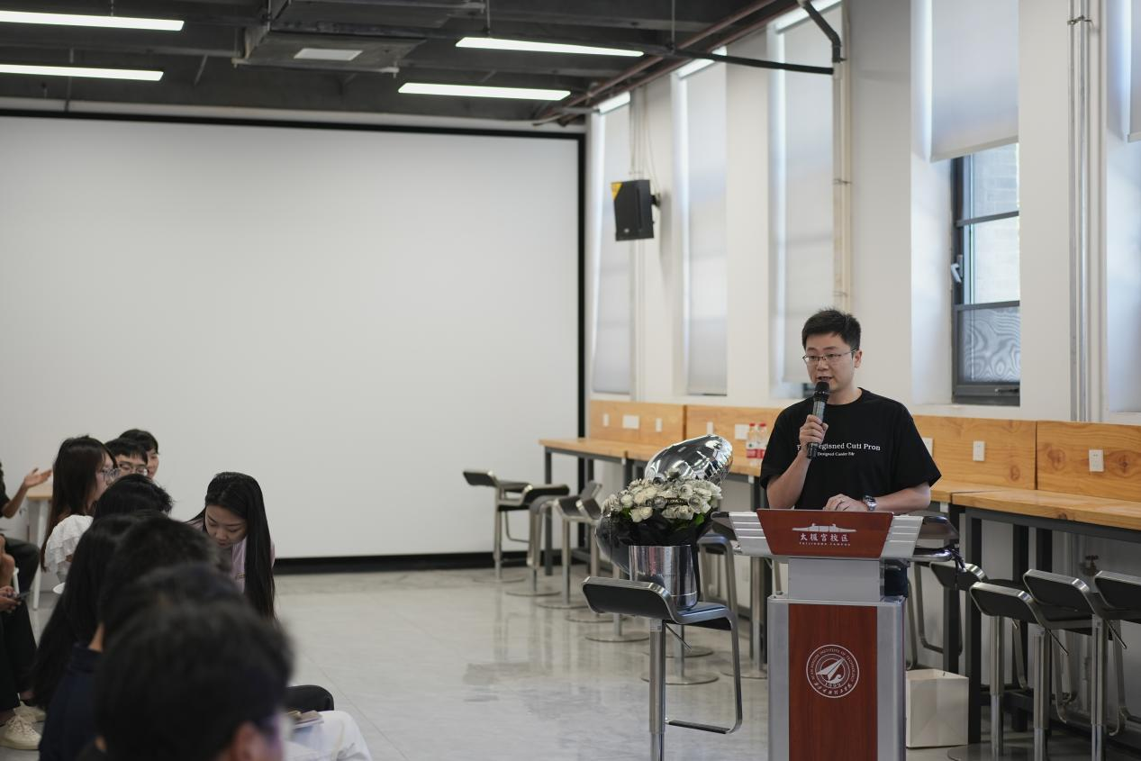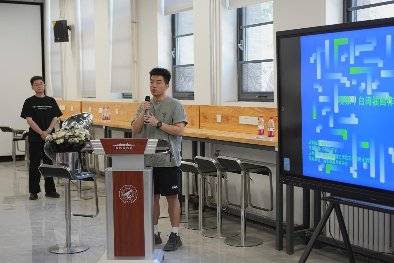 学生进行活动介绍并表示本次画展的目的是想通过自己的方式来展现艺术与设计学院的多样性和丰富性,以此来感谢学院、老师对其大学四年以来的教导与帮助,感谢四年大学时光有同学们的朝夕陪伴与支持,同时也是想对自己大学四年的绘画经历做一个圆满的总结。