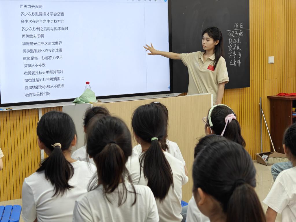 实践队成员通过角色扮演、情景对话等创新方式,通过互动游戏、诗歌朗诵,让孩子们在轻松愉快的氛围中练习普通话,提高他们的语言表达能力和自信心,帮助他们掌握正确的发音和语调、培养绘画兴趣、通过书法和剪纸体会中华文化的博大精深和独特魅力,同时通过舞蹈合唱为乡村文化的传承注入新的活力,激发了孩子们学习的兴趣。