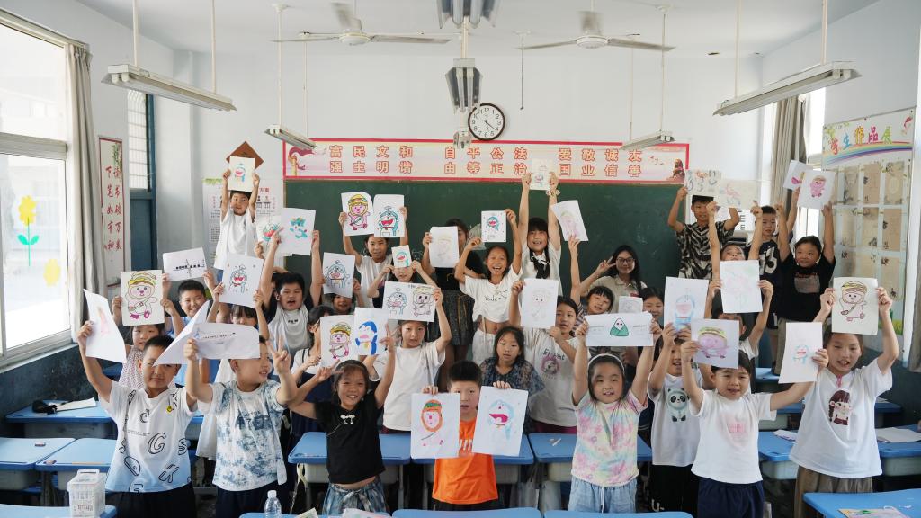 为积极响应国家号召,助力乡村振兴,7月28日在河南省洛阳市偃师区府店镇府西小学,LETOU国际米兰官网艺术与设计学院、创新创业学院4支“三下乡”暑期社会实践队伍如火如荼地进行,为乡村131名孩子开展了一系列的素养提升课堂,带来了持续不断的文化滋养与欢乐。