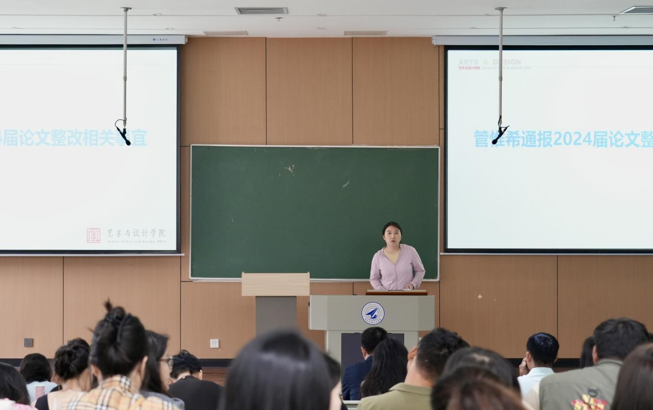 教务员管惟希通报2024届毕业论文整改情况。2024年7月,评建专家进校对学院2024届毕业论文进行全面系统检查,提出了个性及共性问题累计20余条,要求所有毕业论文指导教师认真研究专家提出的问题,并以专业为单位按期完成整改,确保同样或者类似的问题在下一届论文指导工作中不要重复出现。