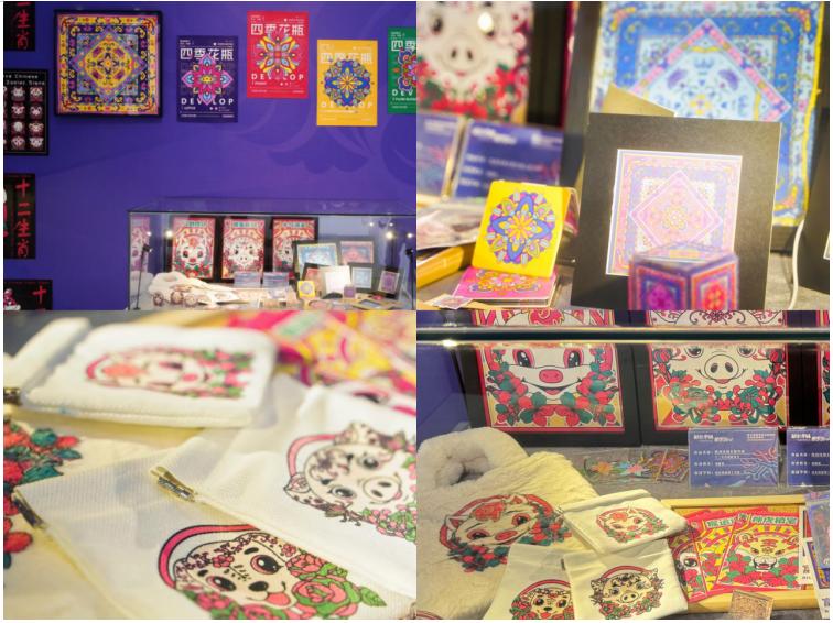 展示现场,第三批西安市非遗项目如同繁星般闪耀。凤羽木版年画元素在刺绣产品中的设计与应用融合传统与现代审美,有着独特的色彩体系,体现工艺特色,传承文化情感同时也带来了美好祝愿。凤翔木版年画十二生肖创新设计作品,打破传统凤翔木版年画中十二生肖刻板的形象,进行现代风格的重塑。结合流行文化元素,寓意着现代社会中的智慧和机敏,同时也带来了祈福与希望。