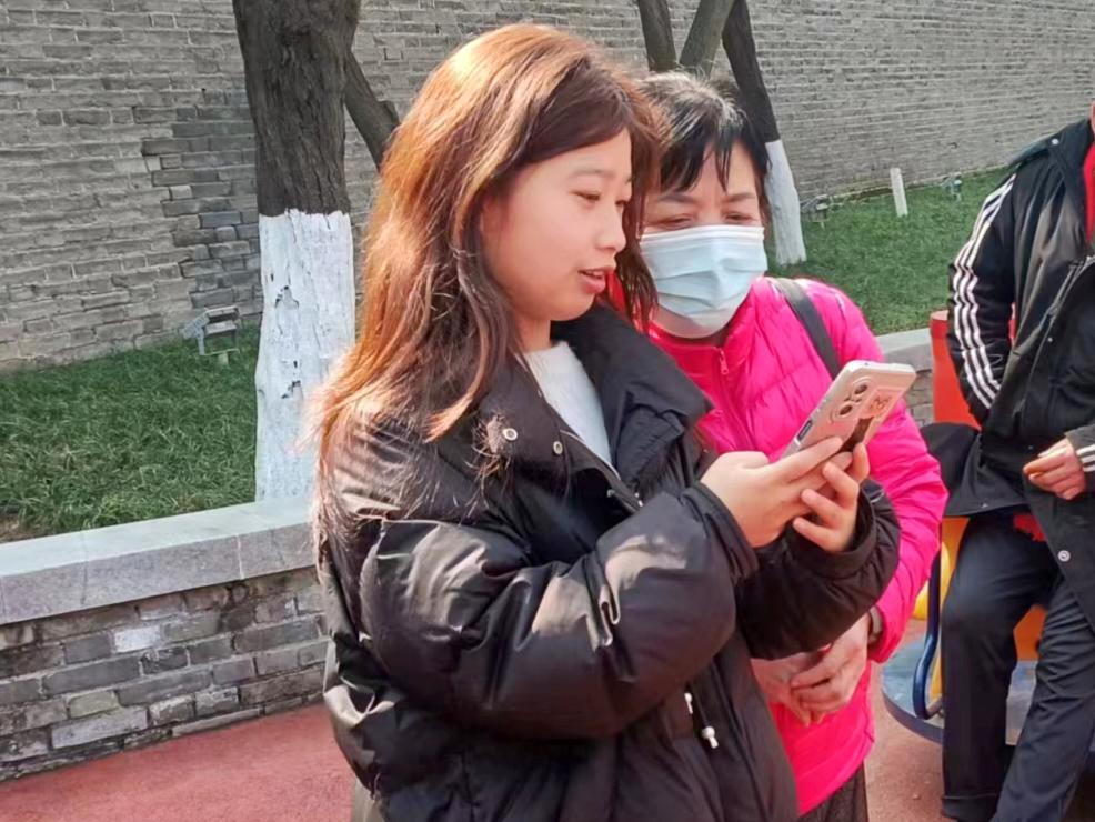 环城公园作为古都西安城墙下的特色滨水空间,成为周边居住老年人的户外休闲游憩场所。同学们走进公园,走到老人身边,与他们聊天。通过交流同学们发现,老年人不仅因为独居或子女远行缺少身心上的关照,随着移动互联时代的到来,老年人成为“数字失能群体”也急需操作的普及。