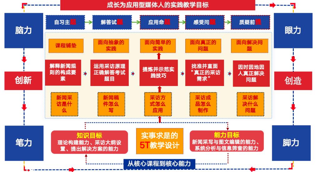 会上,何婕老师做了以“价值引领、三元融合、多方协同”为主题的《电视节目策划与制作》课程实践教学体系创新说课报告,获得与会成员的高度好评,同时,王雪娇老师汇报了专业团队在智能传播与新闻创新方面近年来的思路与实践成果,汇报提出了通过教学设计如何与习近平总书记提出的新闻记者践行“四力”原则相匹配,教师需带着学生走向知识,通过5T教学设计变教案为学案,变教师为导师,通过创新与创造鼓励学生成长为应用型媒体人。