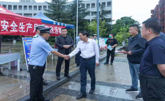 此次活动通过设置咨询台、摆放宣传展板、展示安全器材、发放宣传资料等方式,和学生们面对面进行安全知识宣传。校领导高度重视校园安全教育活动,校长杨健君、党委书记阎东明、副校长王斌宁亲临现场积极参与到其中,对传单、展板的内容仔细查看,并对后续工作提出了细致要求。