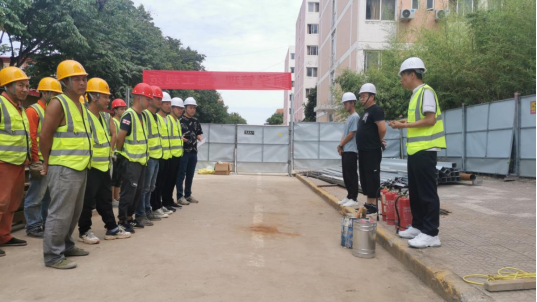 演练开始前,后勤安保部周宇泉老师就夏季高温时间施工提出几点注意事项:一是加强防火安全教育,提高施工人员消防安全意识;二是要求代建负责人和监理负责人加强现场用电监管,确保用电安全;三是要求施工单位负责人做好施工人员防中暑措施。