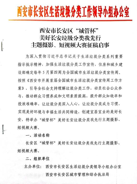 西安市长安区“城管杯”美好长安垃圾分类我先行主题摄影、短视频大赛征稿启事