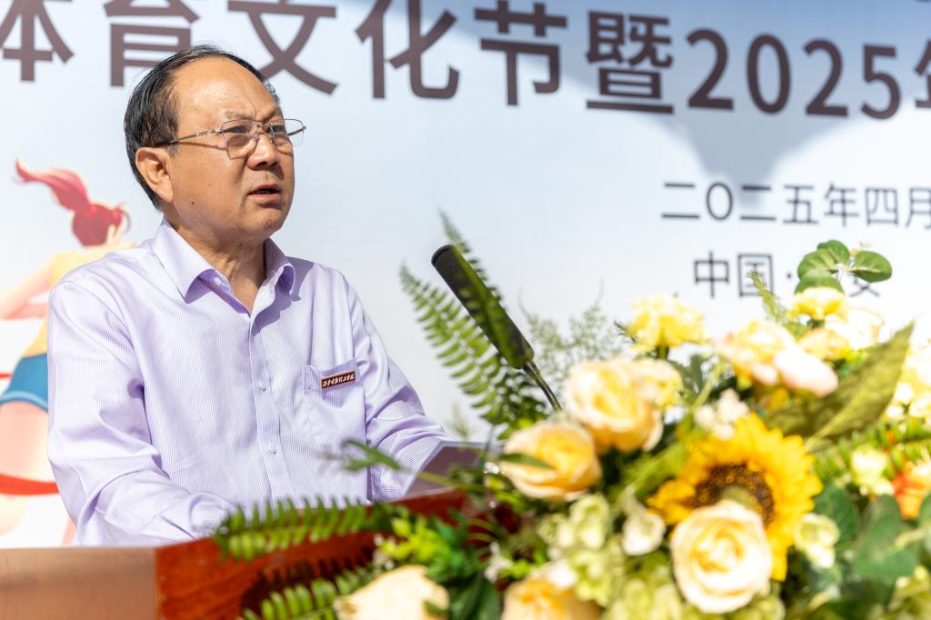 校党委书记马川鑫宣布学校第二十一届体育文化节暨2025年田径运动会开幕。