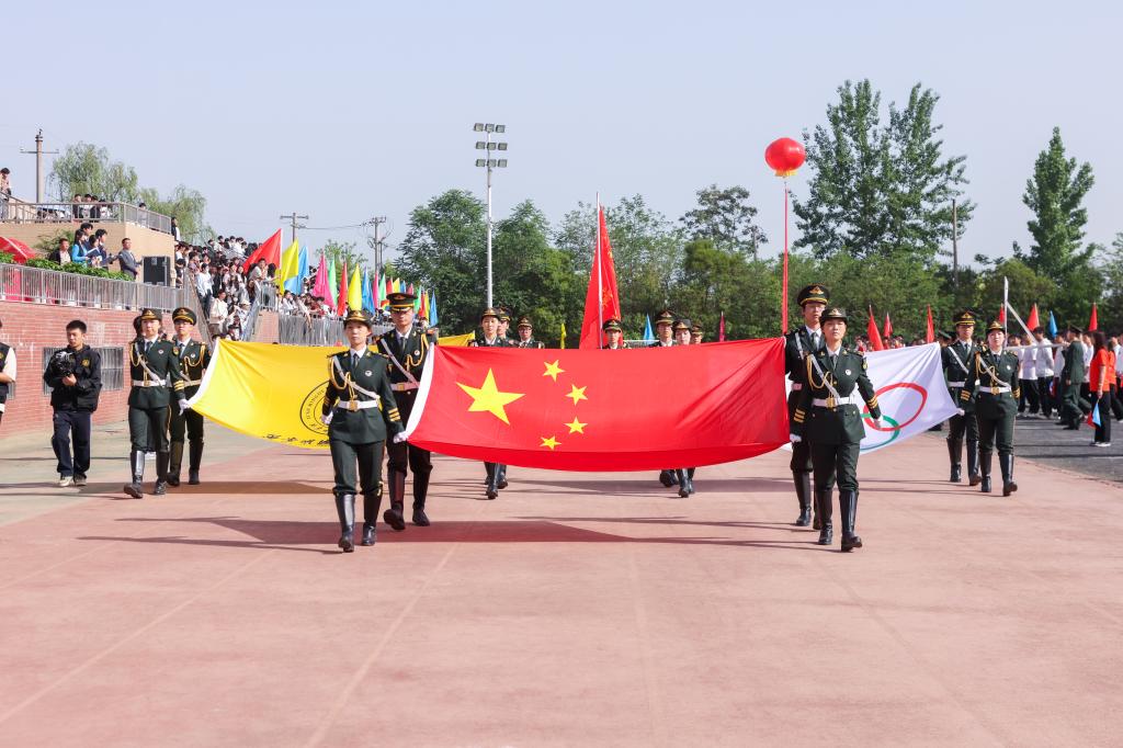 伴随着激昂的《运动员进行曲》,国旗队高举国旗庄严入场,拉开运动会序幕。紧随其后的是由各二级学院、教职工等组成的9个运动员方阵,各代表队以饱满的精神风貌依次亮相,结合各学院专业特点,完成创意表演。学校足球队、篮球队、乒乓球队、健美操队、艺术体操队等组成的特色运动员代表队依次登场,呈现了一场精彩的运动展示。