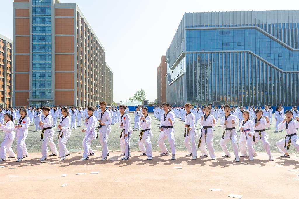 跆拳道表演《品势太极一章+击破》中,学生们身着崭新的服装,精神抖擞,动作规范且充满力量。在品势表演环节,他们的一招一式尽显跆拳道的精髓,节奏把控更加精准。击破环节更是令人惊叹,他们凭借精湛的技艺和强大的力量,成功击破木板,赢得了观众们的阵阵喝彩。