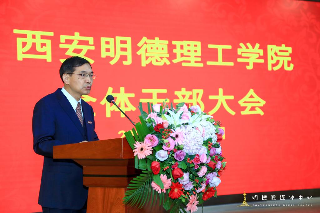 袁汉源董事长结合学院目前发展现状和面临的新形势新任务,做出三点工作要求。第一要紧紧抓住国家高质量发展民办高等教育的有利契机,抢抓机遇;第二要切实加强作风建设,强化服务意识,优化工作流程,想方设法帮助师生解决实际困难,真正把工作做到广大师生的心坎上;第三要切实加强纪律建设,做到真管真严、敢管敢严、长管长严,做到有责必问、问责必严。