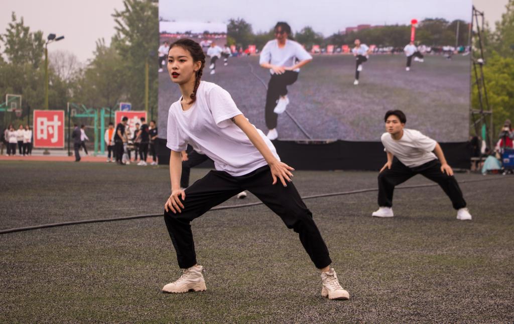 伴随运动员、裁判员退场,铿锵有力的鼓声阵阵响起,身着舞狮的运动员在运动场上翻腾起舞,迎来了一片喝彩。随后,广播操、太极拳、健美操、街舞、航模表演等方队依次闪亮登场,精彩表演赢得现场观众热烈的掌声与热情的欢呼。