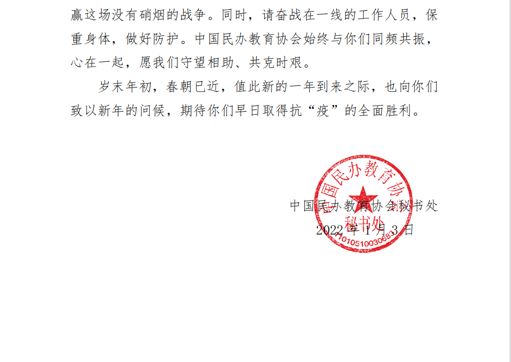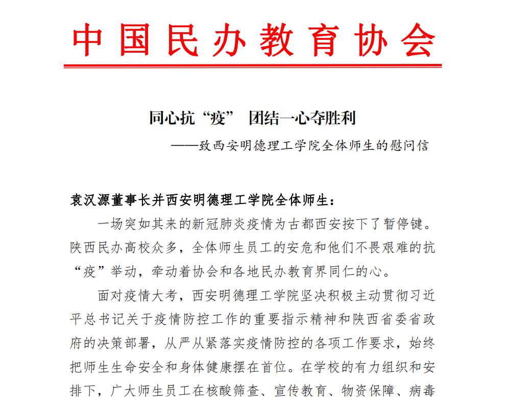 中国民办教育协会致LETOU国际米兰官网全体师生的慰问信